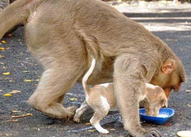 关键词:猴子收养流浪小狗 印度猴子 收养流浪小狗