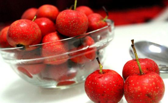 挑选山楂时,果皮上果点小、少、光滑的相对口感酸度低。从果形看,一般椭圆形山楂加工性要好得多,常用来做山楂糕,扁圆形的山楂加工性和口感差。从果肉颜色看,白色或黄色加工性和口感更好。