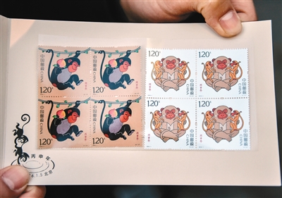中国邮政于1月5日发行的《丙申年》生肖猴票,1套2枚,小本票1本。整版邮票今年推出了16枚的规格,猴大版也成为市场炒作的主力品种。根据市场 认可度较高的“一尘”网行情,1月5日上市当天价格从300多元一版,飙升到400多元,后来持续上扬,最高950多元一版,目前仍维持高位。一套总面值 仅38.4元的邮票,被爆炒到如此高价,让人始料未及,更让利欲熏心的造假者更加疯狂。据了解,由于2015年邮票大版按每版20枚的版式设计,造假者误 以为2016年《丙申年》邮票也是20枚一版的版式,哪曾想《丙申年》邮票改为16枚版式,让造假者吃了败仗。