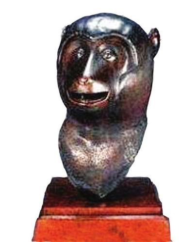 猴首铜像铸于清乾隆年间(1736-1795),高46厘米,为圆明园海晏堂十二生肖铜像之一,属国宝级文物。