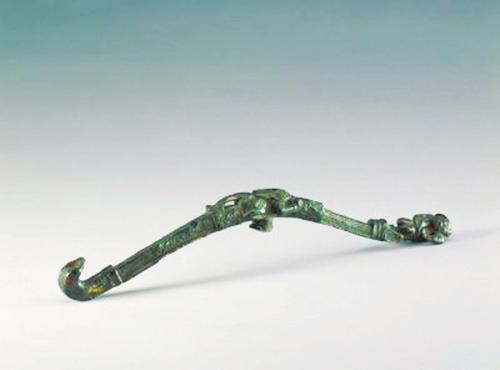 带钩为古人腰带上的挂钩,铜制带钩最早流行于游牧民族地区,春秋战国时期在中原地区始现,并一直沿用至汉代。
