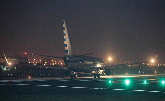 马英九专机早上6时在松山机场起飞。图片来源:台湾《中时电子报》