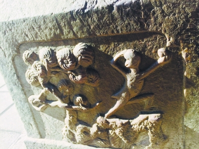 往年春节庙会,要找石猴就往人多排队的地方观望,准能看见石猴在哪儿。平时白云观内游客不多,石猴真是要靠“寻”。第一只石猴我就差点错过了。山门斗拱东侧的浮雕底部,一朵祥云之下,刻着一只只有巴掌大小的石猴,不仔细看真看不出来。小石猴离地面高不到两米,摸的人一伸手就能够到,白云观里被摸得最多的石猴就数这只了。虽然它的局部已经模糊了,但从外形也能看出小猴蜷腿坐着,手里似乎抱着桃子,整体感觉用时髦的词形容就是 “呆萌”。就算是没有摸石猴的讲究,这么可爱的小猴子被人看见,估计也是要摸上一摸的。