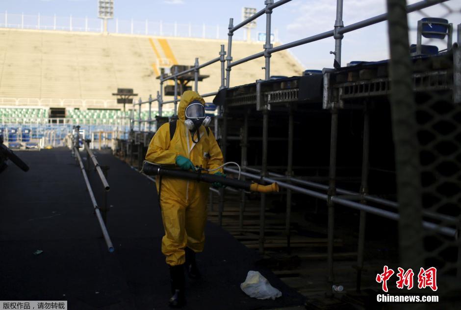 巴西里约热内卢还有不到一周的时间就将迎来狂欢节,几个月后将迎来奥运会的比赛。大量人群从全球各地蜂拥而至,涌向巴西大街小巷,而在此迎候宾客的可能不止巴西人民的热情和美丽的风景,还有携带病毒却无法定位的蚊子。图为卫生人员在里约的奥运场馆内灭蚊。
