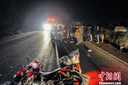 29日晚,在广西藤县境内,返乡摩托大军路遇车祸。 蒋雪林 摄