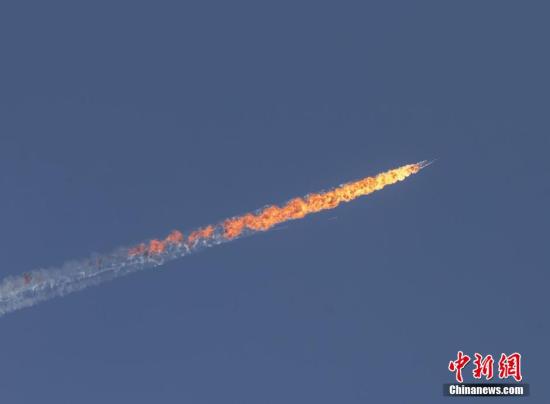 当地时间2015年11月24日,一架俄罗斯苏-24战机在叙土边境坠毁。图片来源:视觉中国