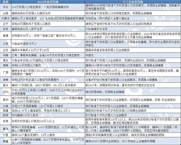 各省区市2016年及十三五扶贫目标