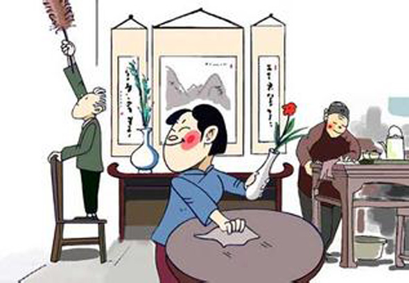 北方人称“扫房”;南方人称“掸尘”。传统上,这一天家家户户黎明即起,扫房擦窗,清洗衣物,刷洗锅瓢,实施干净彻底的卫生大扫除。据《拾遗记》记载,此俗可追溯到三千多年前,当时为驱疫鬼,祈安康的宗教仪式。后“尘”与“陈”谐音,故扫尘也就是把陈旧的东西一扫而光,这既指庭院内的陈年积垢,也指旧岁中遇到的不快。