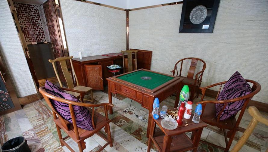 虽然里面布满灰尘,有些包房内的天花板出现掉落,但依然难掩装修的奢华。在灯光的照射下,似乎能够想象出“皇家一号”当时的热闹情景。