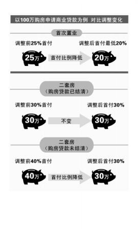 昨天,央行、银监会联合发布消息称,在不实施限购措施的城市,居民家庭首次购买普通住房的商业性个人住房贷款,原则上最低首付款比例为25%,各地可向下浮动5个百分点,购买二套房且贷款未结清的家庭,最低首付比例不低于30%。分析人士指出,在经济下行、房地产库存高企的背景下,新政意在刺激非限购城市购房需求、促进中国经济平稳运行。