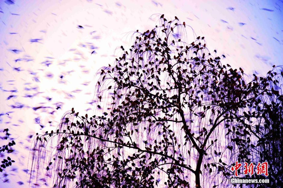 2月2日,山东省济南市,在趵突泉景区上空,数万只各种鸟类在天空中盘旋,鸟群飞过产生的“哨音”超过大型交响乐团的演奏声音,并且飞走一群,又来一帮,“哨音”此起彼伏,在泉城上空回荡。其种群之大、数量之多,均是多年难得一见,被当地市民称为“万鸟朝阳”。 高东风 摄 图片来源:视觉中国