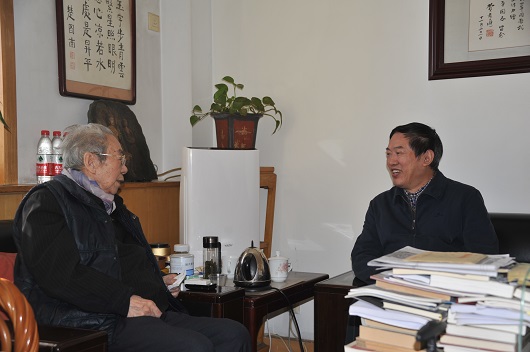 1月19日上午,龙庄伟副主席亲切看望了原民盟中央副主席袁行霈先生。龙庄伟首先向袁先生转达了张宝文主席、陈晓光常务副主席的亲切问候,并代表民盟中央向袁先生及家人送上新春祝福。在交谈中,龙庄伟向袁先生详细介绍了2015年全盟在参政议政、社会服务、组织建设等方面取得的成绩以及民盟中央机关建设情况。袁行霈先生对民盟中央的关心和慰问表示感谢,对近年来盟务工作取得的成绩表示欣慰,并委托龙庄