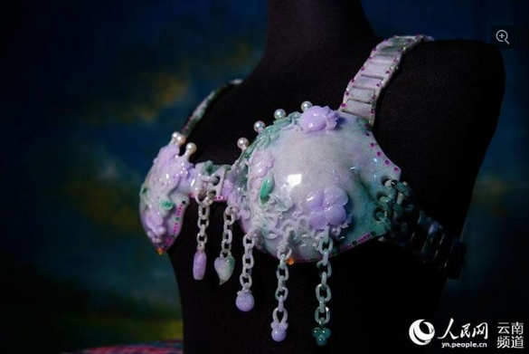 原标题:云南德宏玉雕师三年雕刻成翡翠内衣 表面镶嵌上百颗宝石