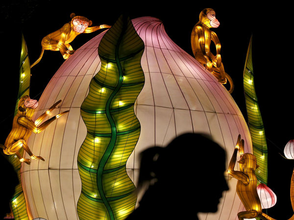 2月3日,在英国伦敦奇西克庄园,参观者在中国彩灯节期间走过一处彩灯装置。新华社/路透