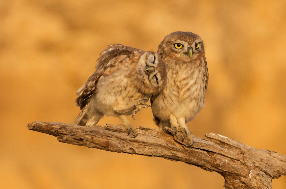 2016年2月4日报道,这组照片显示,两只小猫头鹰停在一根树杈上亲密互动,萌趣十足。其中一只小猫头鹰将头依偎在另一只肩膀上,看上去就像是犯了错的男朋友在恳求女友的原谅,画面让人看着是忍俊不禁。Amit HaasMercury Press/东方IC