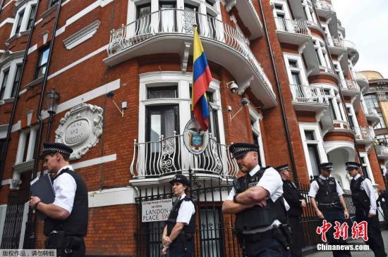 英国最高法院2012年裁定将阿桑奇引渡瑞典,在外保释的阿桑奇进入厄瓜多尔使馆寻求政治庇护,在馆内生活至今。英国警方长期派人驻守大使馆外,并表示阿桑奇一旦离开使馆便会对其进行逮捕。