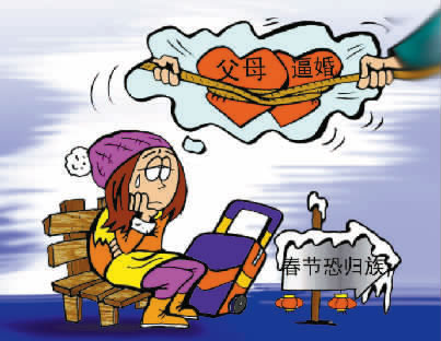另一方面,年轻人回家过年有“烦恼”。中国关心下一代工作委员会健康体育发展中心近日发布的《中国逼婚现状调查报告》也显示,近八成受访者曾被父母逼婚,25至35岁的青年压力最大。不少未婚80后表示,每次过年回家,各种七大姑八大姨就开始齐齐上演“催婚”的戏码,很多人也在朋友圈调侃自己,“不是正在相亲,就是在去相亲的路上”。说一千道一万,爸妈虽然着急,孩子的路还要自己走。