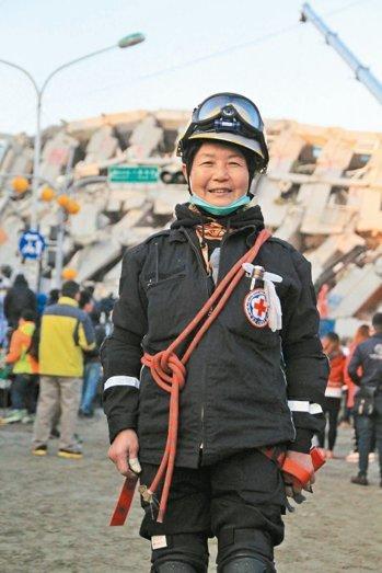 70岁的林美霞,九二一震灾后先是投入环境志工,后来加入搜救队,现在是红十字会南投支会队员,汶川大地震搜救也有她的身影。
