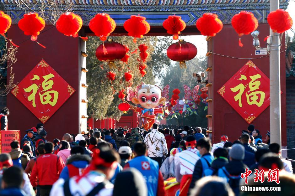 2月8日,猴年春节初一,北京地坛春节庙会拉开帷幕。地坛庙会始办于1985年,春节逛地坛庙会已成为北京民众沿袭多年的习俗。中新社记者 富田 摄