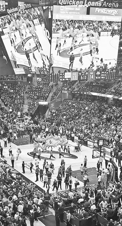 近日,美国男篮职业联赛(NBA)现场舞起中国龙,庆祝中国春节。人民网记者 陈星星摄