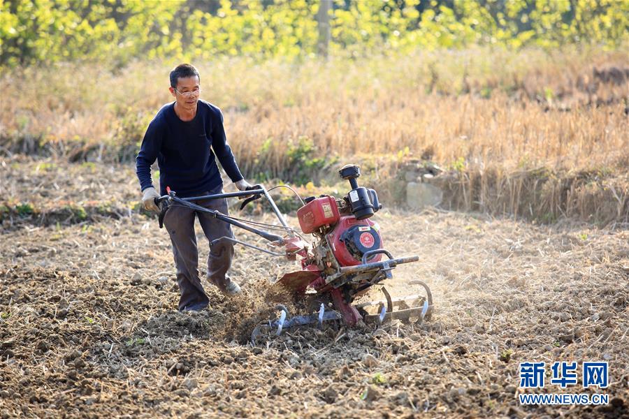 2月10日,广西河池市凤山县乔音乡康里村村民在田间整理土地。春节期间,各地农民抓住晴好天气犁田松土,为新一年的春耕、春种作准备。 新华社发(周恩革 摄)