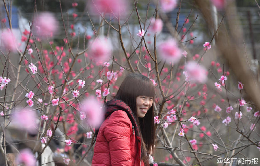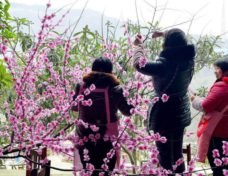 原标题:成都农家乐扎假桃花吸引游客