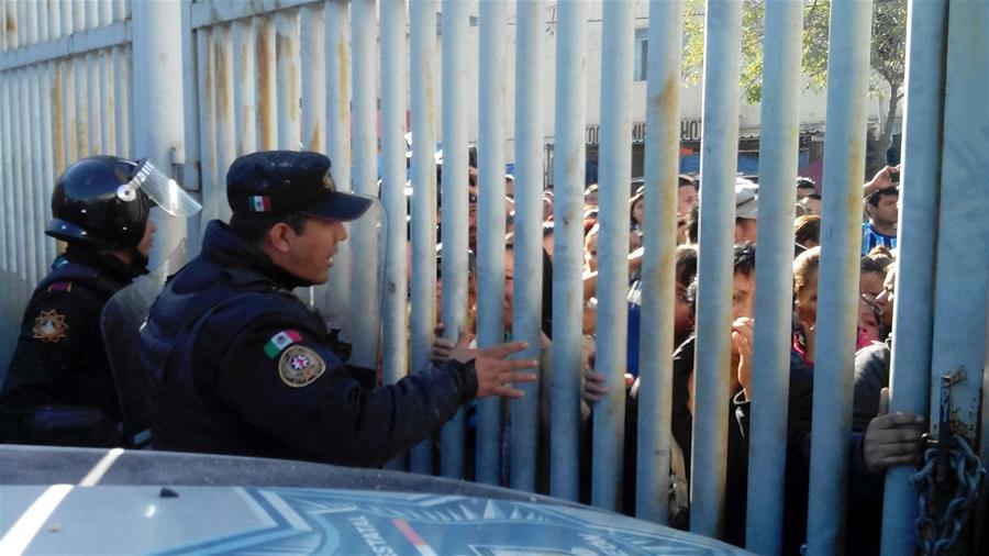 2月11日,警察与在事发现场等候消息的人们交谈。据当地媒体报道,墨西哥第三大城市蒙特雷市一处监狱11日发生骚乱,已造成超过50名囚犯和监狱警卫死亡,超过70人受伤,另有小部分囚犯越狱,但目前尚不清楚具体人数。蒙特雷当地驻军和警察部队已封锁事发监狱并控制局势。新华社发