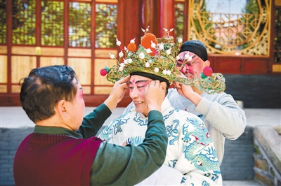 滇剧爱好者在化装。柴?;陨?/span>