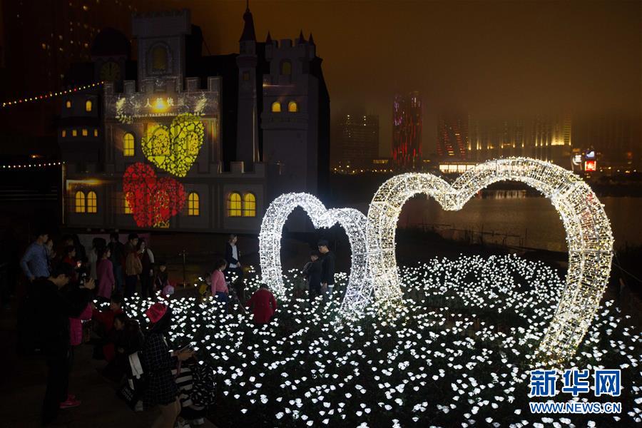 2月12日,市民在观看光雕表演。当日,为迎接情人节,澳门特区政府旅游局在氹仔龙环葡韵圆形剧场为“2016浪漫情人节之光影童话梦”光雕表演举行开幕礼。据了解,本次光雕表演将持续到2月29日。新华社记者 张金加 摄