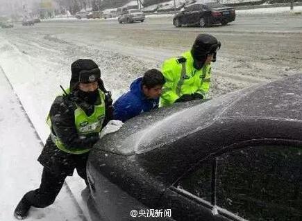 2月14日消息,随着假期结束,各地迎来春运返程高峰,为保道路畅通,各地交警都在坚守岗位。寒风中,大连交警王珠基在帮助七十多位车主推车后,因为太累跪在地上休息。 图片来源:央视新闻微博