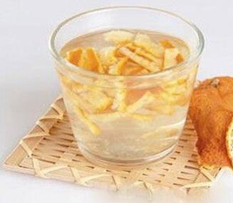 橘皮茶 将新鲜橘皮50克撕碎,加少许白糖,开水冲泡,当茶饮,对较轻微的胀气颇有疗效。若无新鲜橘皮,可用6克陈皮泡茶饮服,也有一定作用。