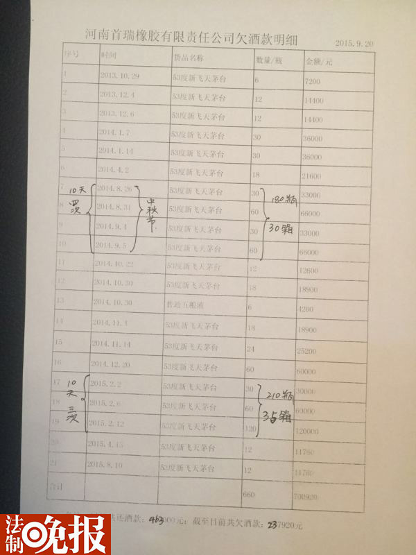 许昌工商联副主席拖欠巨额茅台酒款 本人:酒都是自己喝了