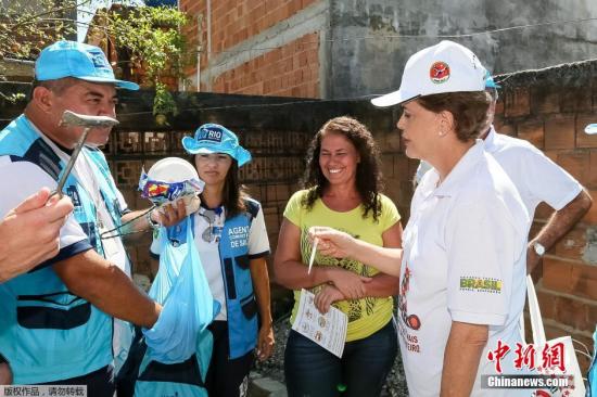 当地时间2016年2月13日,巴西里约热内卢,巴西总统罗塞夫参加消除寨卡病毒国家动员日活动,亲自走街串巷与民众交流。