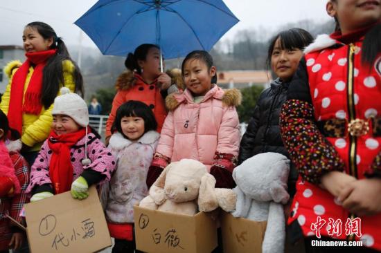 ?。痹拢玻踩眨羰囟故咀约菏盏降男履昀裎?。当日,四川省绵阳市北川县桃龙乡铁龙村举办留守儿童新年礼物发放活动。中新社记者 王骏 摄