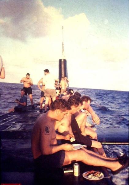 烤肉会不仅是水面舰艇的专利,潜艇有时在非作战海域也会上浮举行类似活动。图为加拿大皇家海军潜艇举行烤肉大会。