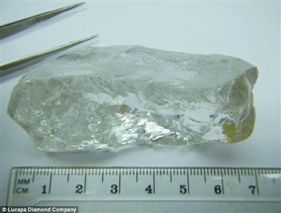 关键词:安哥拉发现 罕见大钻石 长约7厘米 重404.2克拉