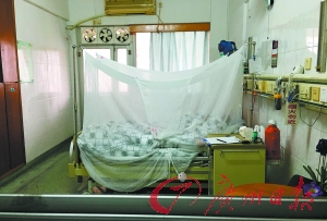 广州市第八人民医院,为防止广东首例输入性寨卡病毒病例在住院期间被蚊虫叮咬,医院特意在病床上加了蚊帐。广州日报记者乔军伟 摄