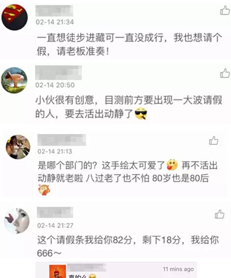 面对这样率真且充满温度的假条,公司领导同意准假,并写到“只要动起来,年轻什么时候都不晚……批准假期,让年轻活出动静。”