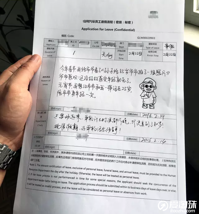 "带爷爷回25岁"请假条走红 领导:让年轻活出动静