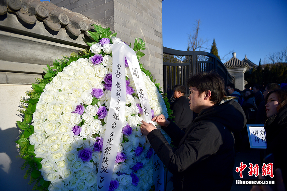 2月18日上午9点,阎肃追悼会在北京八宝山举行,社会各界人士前来送别。2016年2月12日3时07分,著名艺术家、空政文工团创作员阎肃同志因病在北京逝世。随后阎肃的儿子发布微博称,“我父亲阎肃平静地离开了尘世,没有任何痛苦,就像睡着了一样。老爸可能觉得已经完成了自己的使命,所以就这么离开了?!?中新网记者 金硕 摄