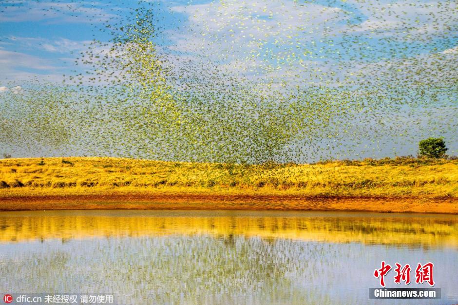 澳洲数万只鹦鹉聚集饮水 遮天蔽日蔚为壮观