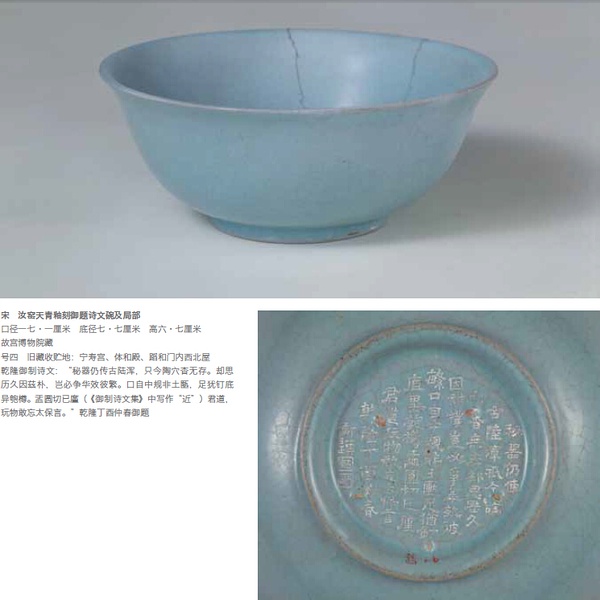 就拿几家收藏汝窑较多的博物馆为例,器身上大都免不了或多或少地存在瑕疵,文章开头说到的那件汝窑器就是典型的民汝器,它引起大学生的嘲讽本不为过。即使那些被乾隆让下人镌刻过御题诗的汝窑器中,也存在颇多疵斑。严格意义上说,是当时选择高古瓷的人定的标准欠宽,以致造成贻误后人的结果。其实,被誉为五大名窑的“汝、官、哥、定、钧”中均存在同时代民窑大量仿制的情况,作为博物馆严格意义上应该在标识中说明官民窑的区别,否则,会误导观众,使观众对历史面貌产生曲解。有人说,博物馆以普及教育为主,只要能说明器物的产生、发展和传承过程,让参观者了解了人类文明的进程史,已起到了很好的教育作用了。如果博物馆的领导也以此就满足了,那馆藏以残破旧为主确无可厚非。但如果该馆想在行业内树起标杆,那只求馆藏数量或混淆官民之间的界限,就显得很不专业了,而且还会造成我们的子孙后代误解了祖先的智慧和能力,误认为祖先的审美标准竟然那么地低?否则怎么会将明显存在缺陷的东西当成国宝?我认为,民间藏家分不清官汝和民汝的区别不足为怪,偶尔收到民汝器欣喜若狅,奉为至宝,也可理解。但作为负有启迪、教育责任的博物馆就不应该了。民间藏家中有一定数量的宋代汝窑,其大多是民汝的东西,应该是属于许之衡所说的,为“杂窑烧造”的器物,与官汝在质量上存在明显的差别。
