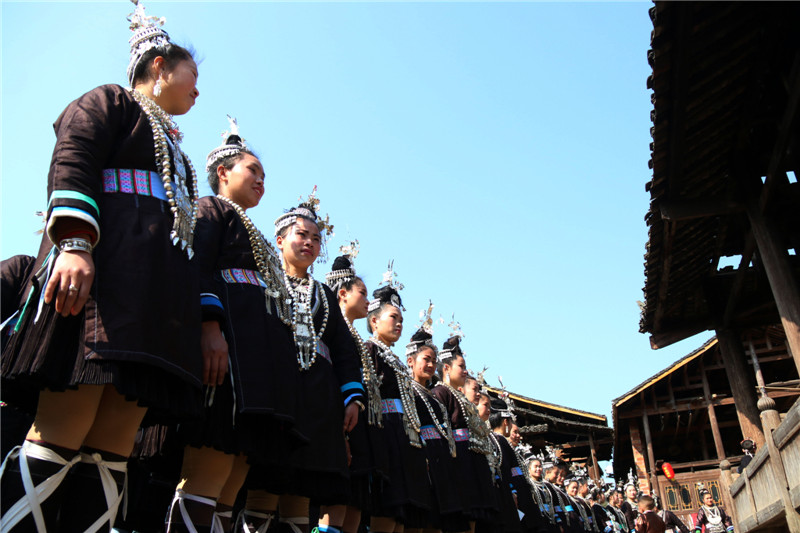 2月17日,侗族村民在参加“鼓楼之宗”活动。