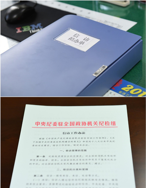 派驻纪检组信访拟办单和信访工作办法(中央纪委监察部网站 郭兴 摄)