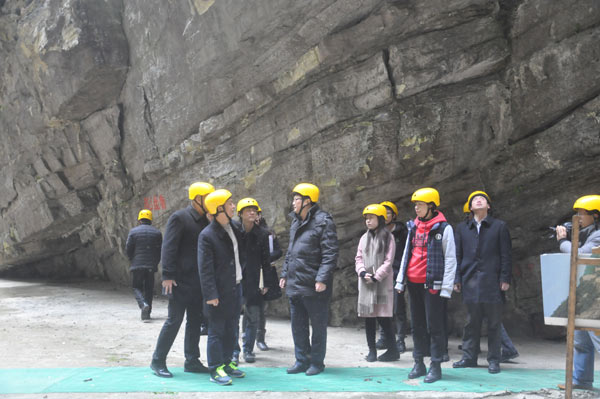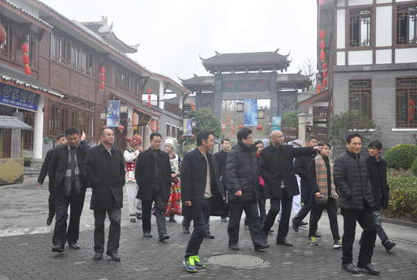 新华网重庆2月19日电(陈蒙)2月17日,民盟中央文化委员会委员、中国旅游商品产学研联盟秘书长、中国特色旅游商品评选组委员专家组组长陈斌深入彭水各旅游景区指导,为彭水旅游景区提档升级把脉。县委常委、常务副县长谢胜,县委常委、统战部长彭玉萍陪同调研。