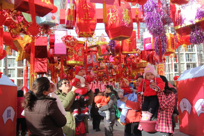 资料图 2012年2月3日,北京崇外街道元宵灯会上,市民将老北京民俗表演搬进了商场,吸引了不少观众驻足。赏花灯、舞龙、舞狮子等元宵节重要民间习俗都在此次灯会上现身。中新社记者 刘关关 摄