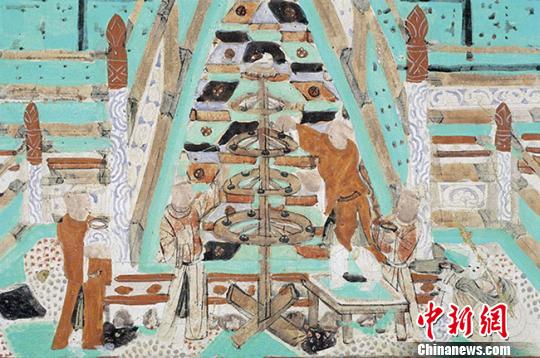 2月22日,农历正月十五,是中国传统的元宵节。敦煌研究院披露了敦煌古老的文献和壁画中,现留存的一批中国唐宋时期敦煌地区元宵节燃灯活动的古老记载。图为放生-莫高窟第12窟(晚唐)。 敦煌研究院供图 摄