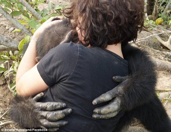 近日,大猩猩?;ぶ行闹魅伟K固囟?Estelle Raballand)来看望它时,孤独的蓬索兴奋地抱住了她,难掩喜悦之情。
