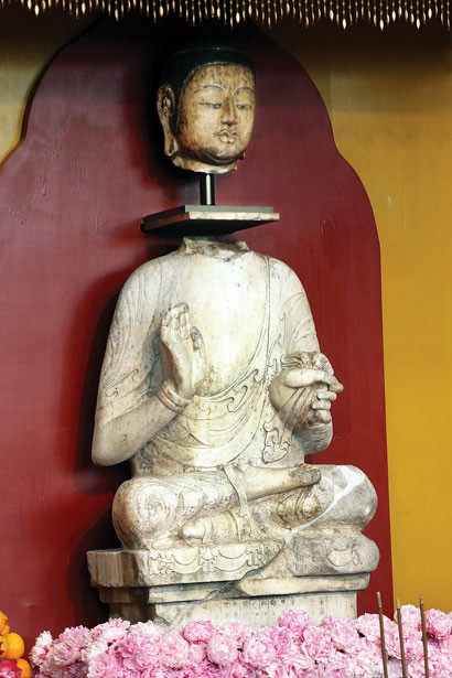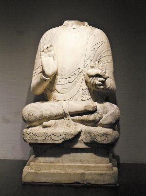 原供养在河北省灵寿县幽居寺塔的北齐释迦牟尼佛汉白玉坐像,塑于北齐文宣帝年间(公元556年),由赵郡王高叡命工匠以整块汉白玉雕刻而成,法相精细而庄严。
