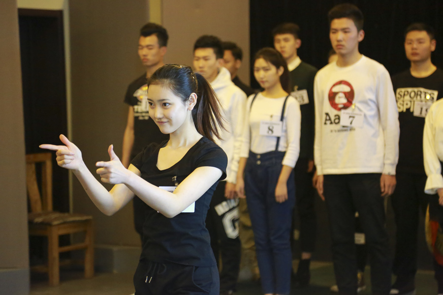 2月23日,考生在北京电影学院表演学院艺考复试考场内表演。